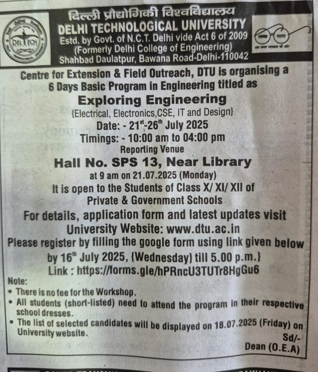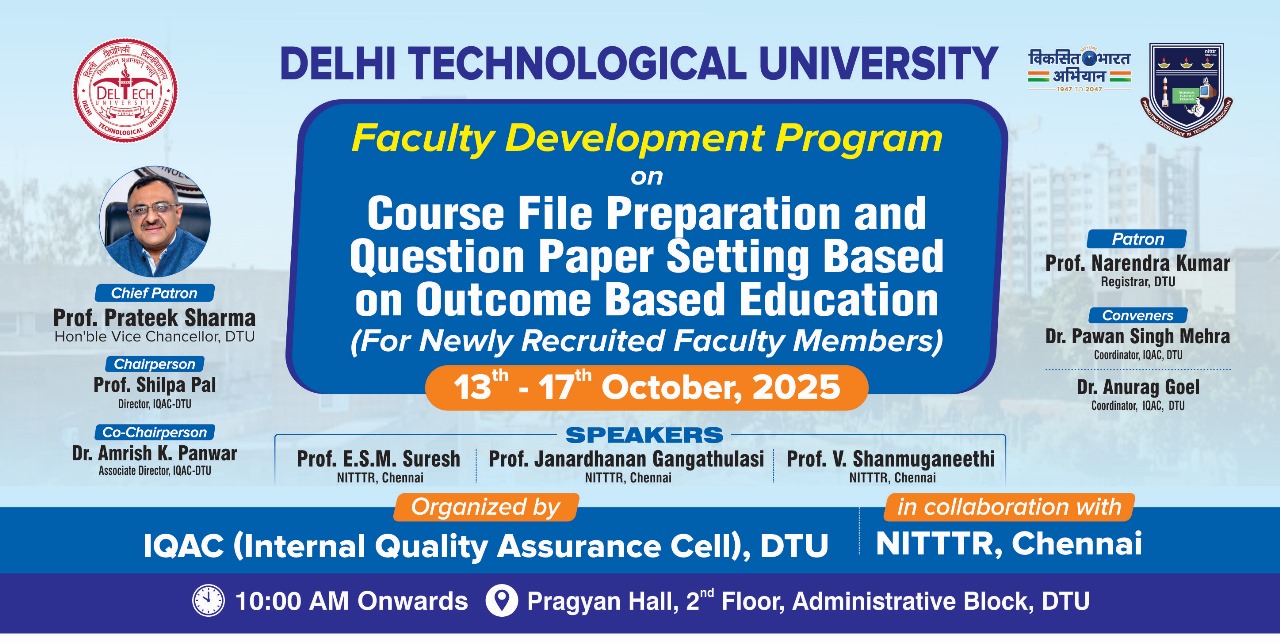 © 2014 - 2021 , Delhi Technological University , Shahbad Daulatpur, Main Bawana Road, DL - 42, IN | ( Best viewed in 1024X768 or above )