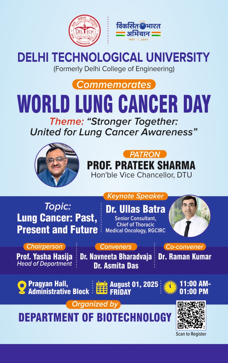 NSS DTU in collaboration with Deptt. of Information Technology and Lions Club Delhi North Ex are organising a blood donation camp on Thursday, 10 October 2024 at DTU campus. We will also arrange talks on Thalassaemia awareness and Palliative care on Wednesday, 9 October 2024. The arrangements will be made with Lions Bala blood Bank, Shalimar Bagh, Delhi to collect and transport the donated blood.