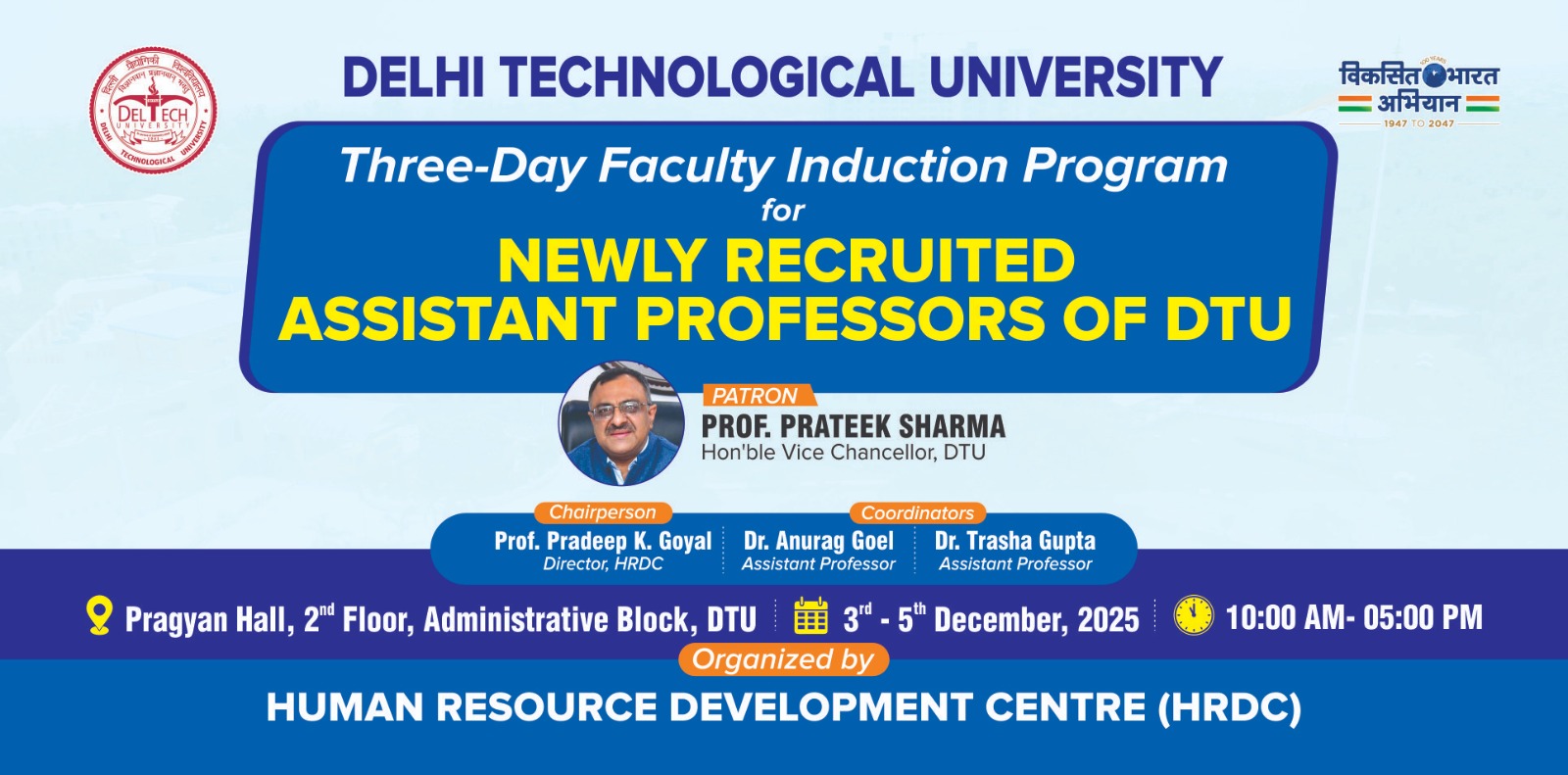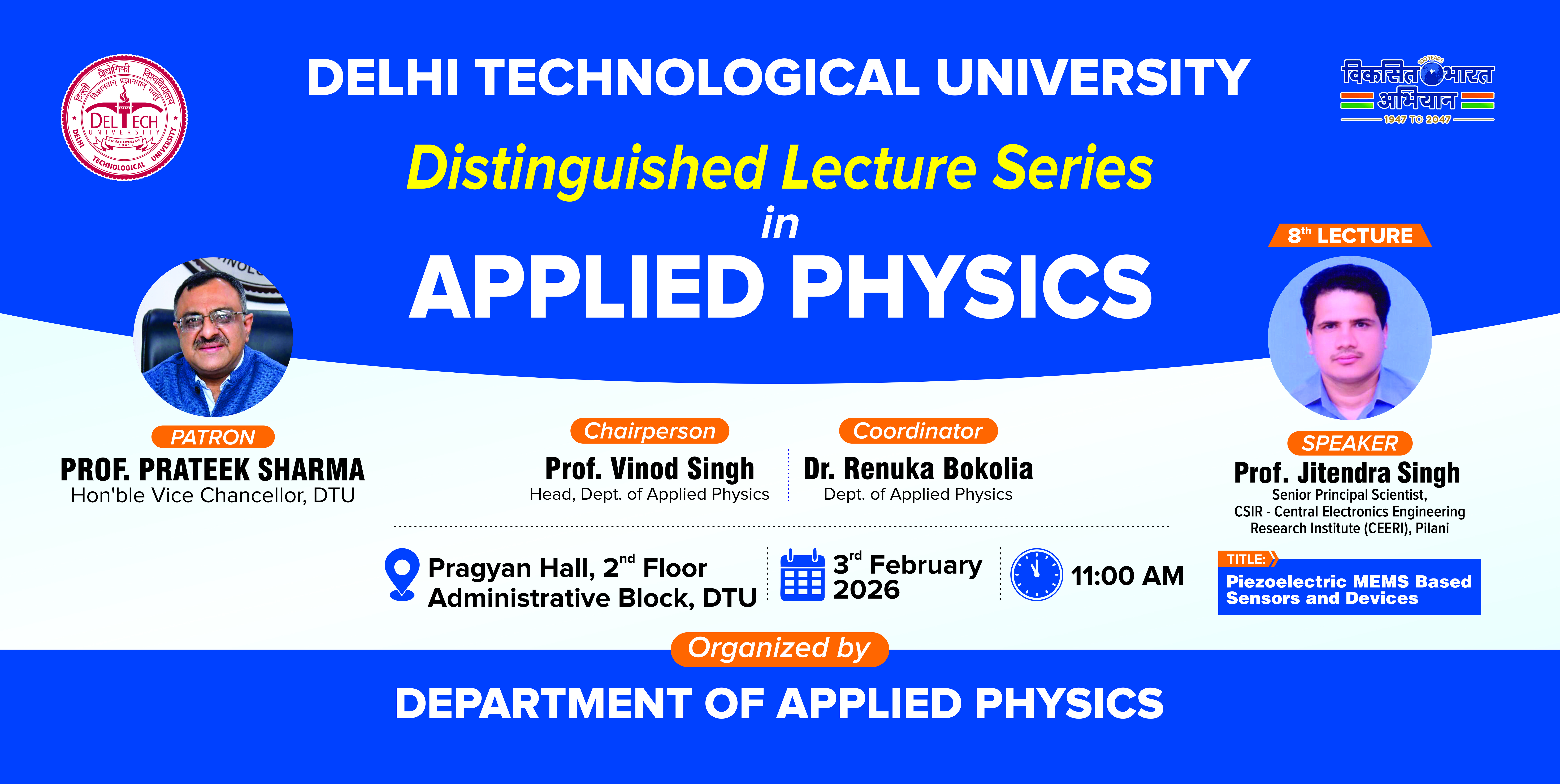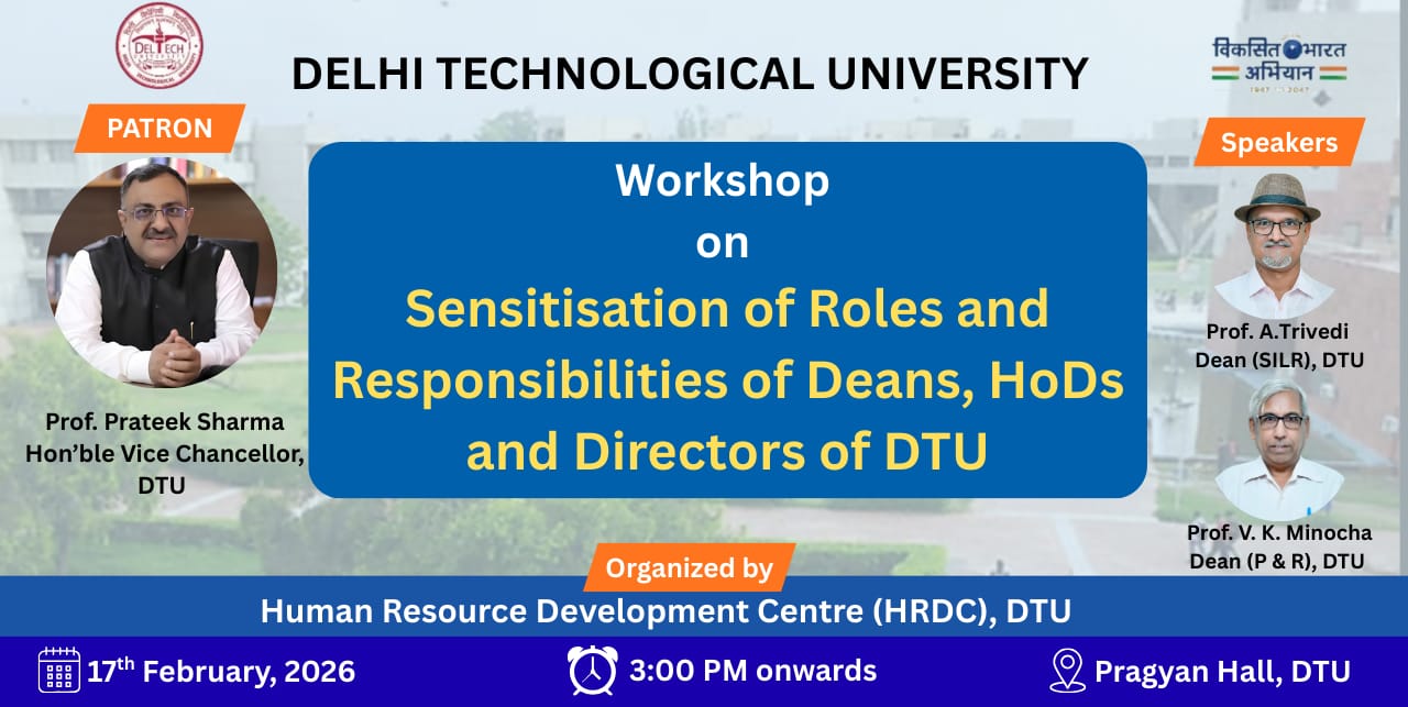 Vinod Dham Center of Excellence for Semiconductors and Microelectronics, DTU is organizing a One Week ATAL Sponsored Faculty Development Programme on “Recent Trends in Semiconductor Technology and Chip Design ” from 2-7 December 2024.