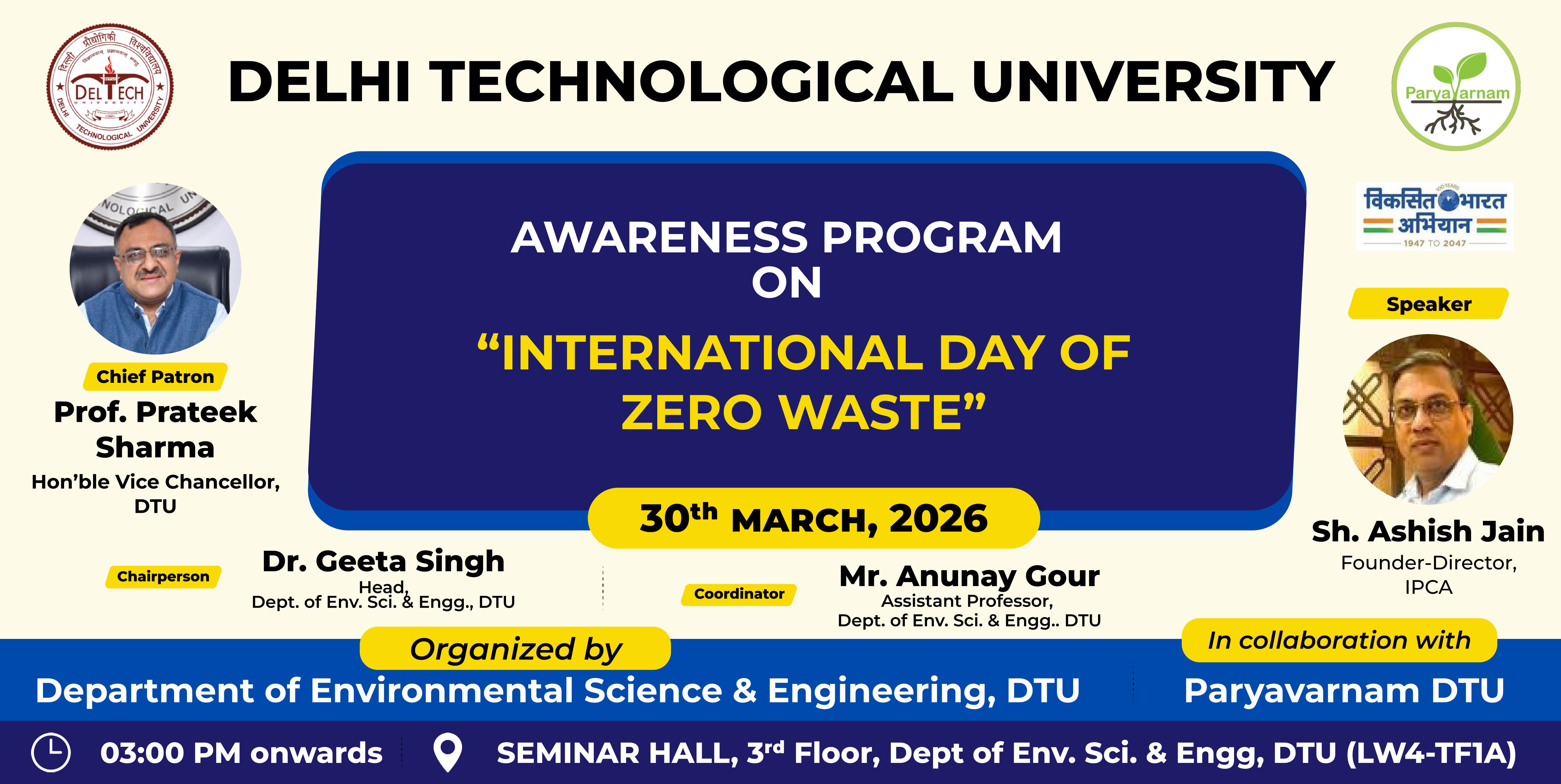 Dept of Civil Engineering DTU is organizing the celebration of Engineer's Day on 17th of September 2024 between 03.00 PM to 05:00PM at Pragyan Hall.